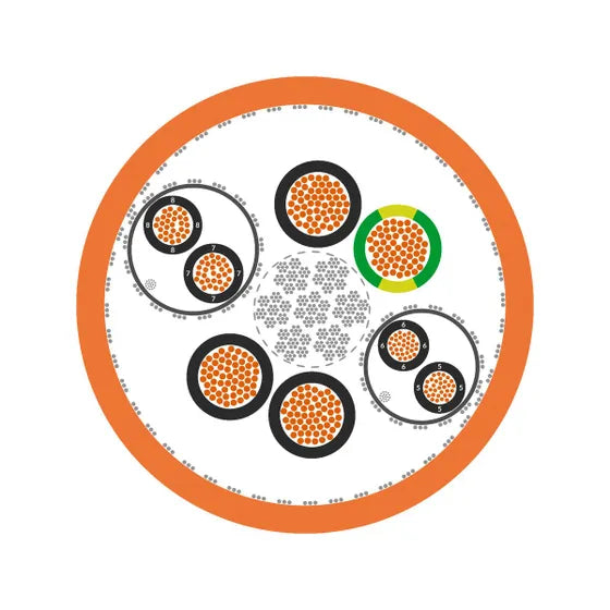 The ÖLFLEX® SERVO 719 CY 4G16+(2x1,0) is a robust, shielded servo cable designed for both power and signal transmission in demanding industrial applications. It features four 16 mm² cores for power delivery, along with two additional 1 mm² conductors for signal or control functions. The cable is equipped with comprehensive shielding to protect against electromagnetic interference (EMI), ensuring reliable performance in electrically noisy environments. Ideal for use in automation, robotics, and heavy machinery, this cable offers excellent flexibility, durability, and stable operation under high-load conditions.