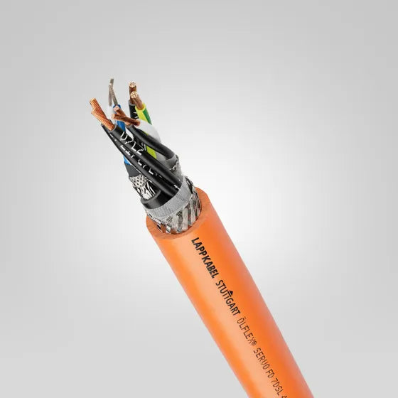 The ÖLFLEX® SERVO FD 7DSL 4G0,5+(2x0,34)+(2x...) is a flexible and durable servo cable tailored for dynamic motion control and industrial automation applications. It features four 0.5 mm² conductors for power supply, two 0.34 mm² conductors for signal or control, and an additional conductor pair (details unspecified) to support versatile connectivity needs. Designed for demanding environments, this cable offers excellent resistance to mechanical stress, flexibility for continuous motion, and robust shielding against electromagnetic interference, ensuring reliable and efficient performance.