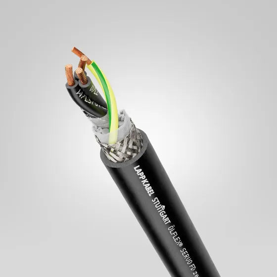 The ÖLFLEX® SERVO FD zeroCM 3X1,5+1G1 is a flexible and high-performance servo cable designed for industrial automation and motion control applications. It features three 1.5 mm² conductors for power transmission and one 1 mm² conductor for grounding or control purposes. The "zeroCM" designation indicates that the cable is designed to minimize electromagnetic interference (EMI) and ensure excellent electromagnetic compatibility (EMC), making it ideal for noise-sensitive environments. This cable is perfect for use in robotics, servo motors, and automated systems, offering reliable, low-emission performance, exceptional flexibility, and resistance to mechanical stress.