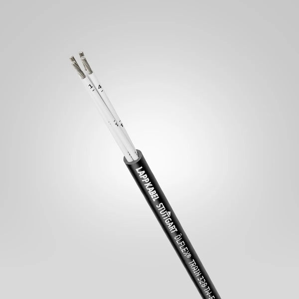 The ÖLFLEX® TRAIN 320 TW-E 300V 2X2,5 is a durable, multi-core cable designed for railway and industrial applications. It features two finely stranded copper cores, each 2.5 mm², ensuring efficient power and signal transmission. Rated for 300V, the cable has a flame-retardant outer sheath, providing excellent protection against mechanical stress, moisture, and harsh environmental conditions. This makes it ideal for use in train control systems, communication networks, and other critical transportation-related applications.