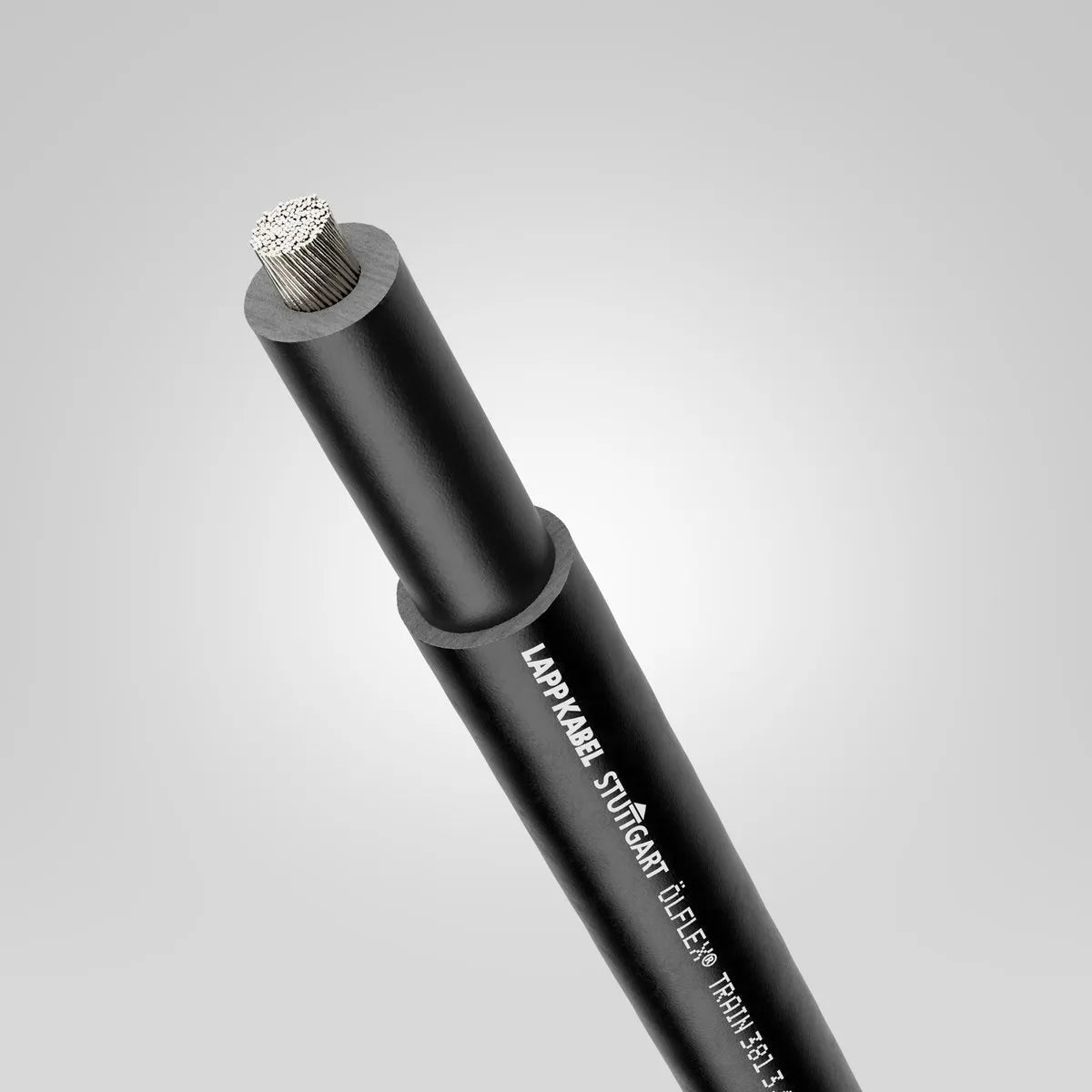 ÖLFLEX® TRAIN 381 3.6kV 1X185 is a high-capacity single-core cable designed for demanding power transmission in railway and transportation systems. With a voltage rating of 3.6kV and a conductor size of 185 mm², it ensures efficient and reliable energy delivery in critical applications. The halogen-free insulation enhances fire safety by reducing toxic emissions during a fire. Built for flexibility, durability, and compliance with rigorous railway standards, this cable is ideal for high-current power distribution in challenging and safety-sensitive environments.