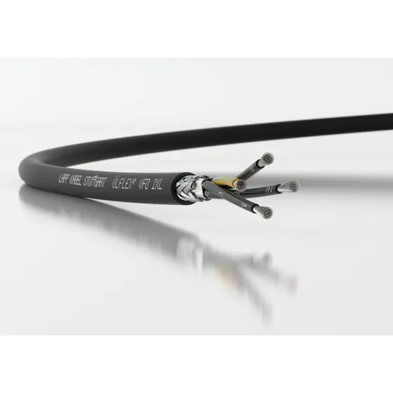 The ÖLFLEX® VFD 2XL 4G2,5 is a flexible, high-performance motor cable designed for use in Variable Frequency Drive (VFD) applications. With four 2.5 mm² cores, it provides reliable power transmission while reducing electromagnetic interference (EMI) for stable performance. Ideal for industrial automation, it ensures durability, flexibility, and protection against mechanical stress, making it perfect for dynamic environments where reliable power delivery is essential.