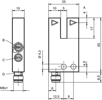 The GS04B/P.1-5-M8.3 is an ultra-compact fork photoelectric sensor designed for precise detection of small objects in industrial environments. Its fork-shaped design allows for easy alignment and efficient object detection in narrow spaces. Ideal for high-speed automation, material handling, and packaging applications requiring high accuracy and fast response times.