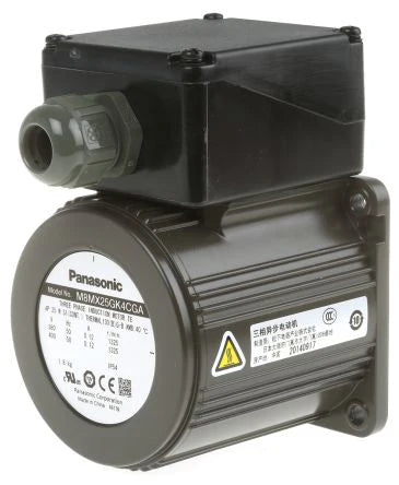 - Panasonic 25 Watt- 4Pole- 80Sq.mm- Three phase- 400 V Ac- 1325Rpm- 0.56N.M- 0.12A- Pinion shaft- Sealed connector- 3 phase induction motor