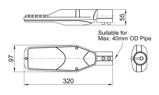 The Panasonic PSTM27358 is a 35-watt LED street light designed for efficient outdoor illumination. Its compact dimensions of 320x97x55 mm make it suitable for various urban and residential applications. Operating at a color temperature of 5700K, it delivers bright, daylight-like lighting. The luminaire maintains a Total Harmonic Distortion (THD) of ≤10%, ensuring energy efficiency and minimal electrical interference. Weighing approximately 0.85 kg, it features a robust design tailored for durability in outdoor environments.