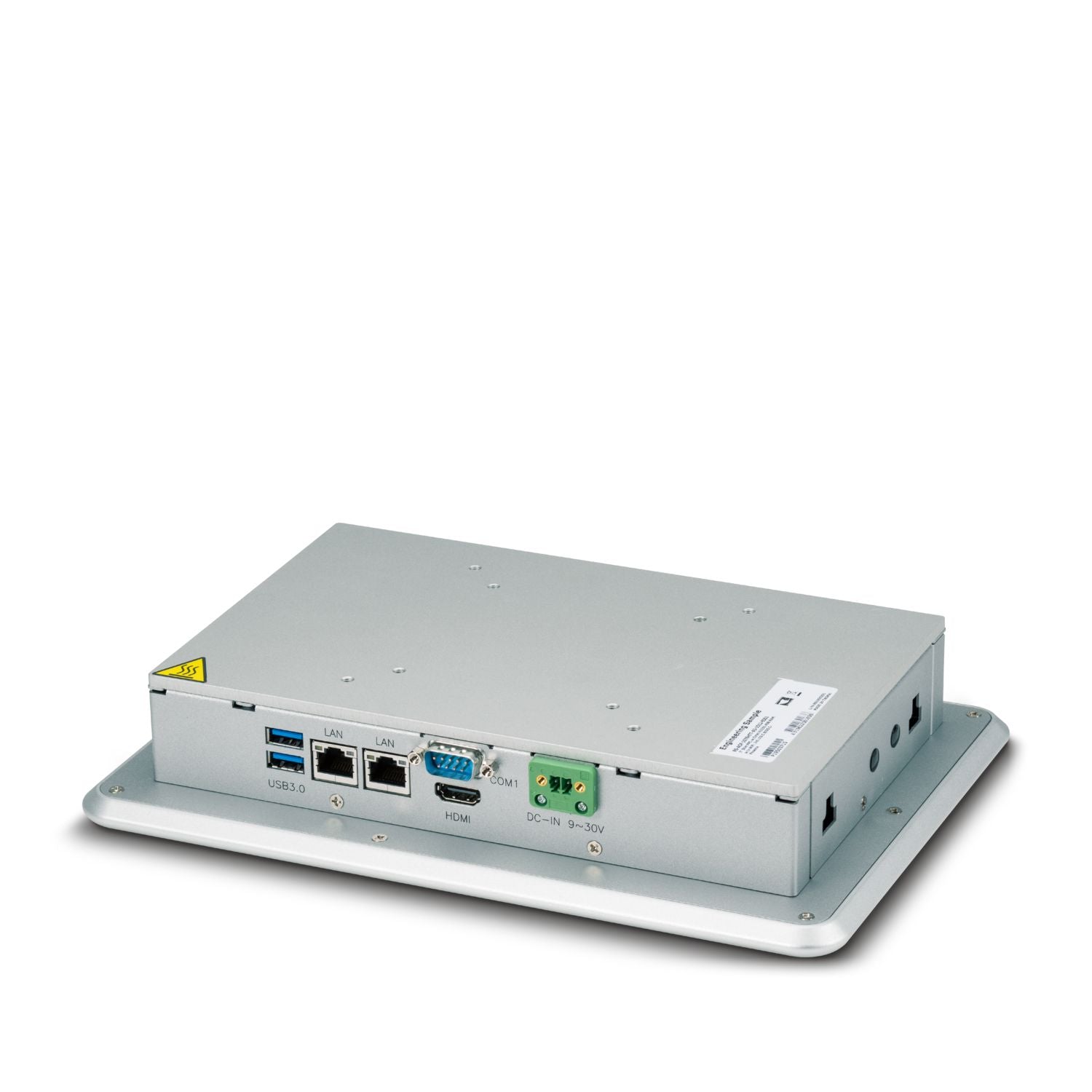IP65 panel PC (PPC) with 7-inch screen, Intel® Celeron® N3350 processor, 4 GB of RAM, 64 GB mSATA SSD, and Windows 10 IoT Enterprise LTSC 2019 operating system.