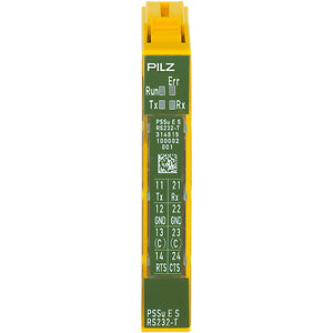 PSSu, electronic module, standard, serial interface, RS232, 1 input, 2 communication channels, 64 Bit, full duplex mode, 7 transmission rates, configurable, 0.6 - 19.2 kBit/s, hardware handshake CTS/RTS, potential isolation, cable length 15 m, for increased environmental requirements.