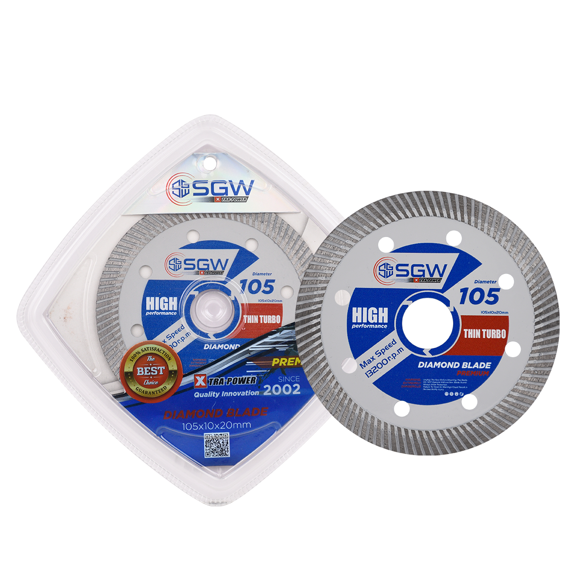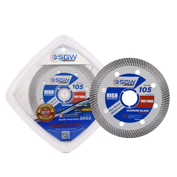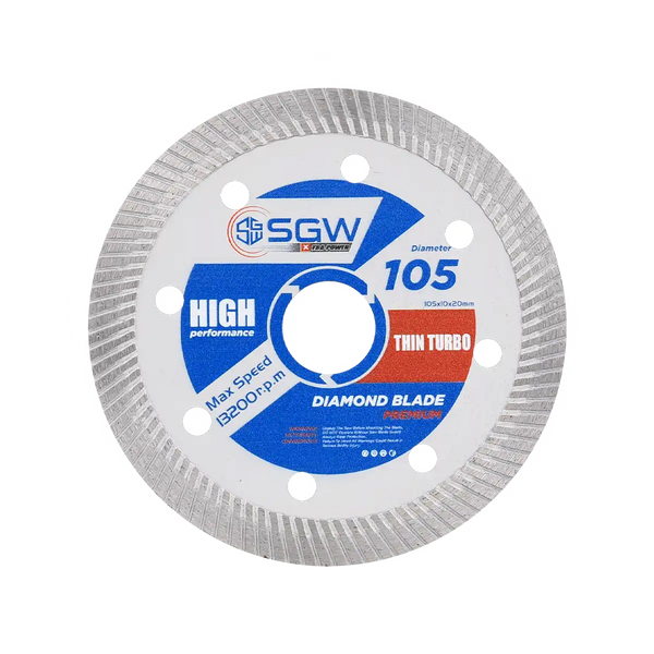 SGW Thin Turbo Diamond Saw Blades offer superior quality, a turbo design for efficient cutting, and a versatile size that fits various saws. When you choose SGW, you're choosing precision, durability, and efficiency for all your cutting needs. SGW Thin Turbo Diamond Saw Blades are ideal for the precision cutting of tiles and natural stones. Whether you're working on a bathroom renovation or a kitchen backsplash, these blades will deliver clean and accurate cuts. When it comes to concrete cutting, precision matters. These diamond saw blades excel in cutting through concrete surfaces, making them a valuable tool for construction and remodelling projects.