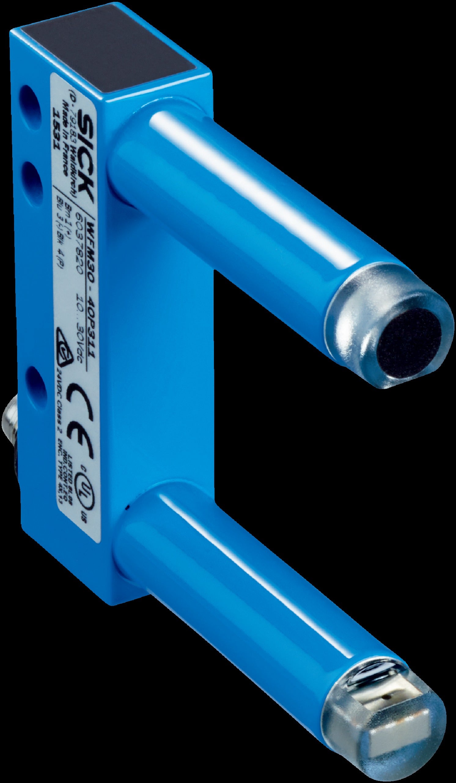 The WFM fork sensors are extremely quick and easy to mount and commission thanks to plug and play. Their yellow receive indicator can be seen all the way round, providing optimum feedback on the switching behavior of the WFM. Since the sender and receiver are integrated within the same housing, there is no need for any complex alignment work, allowing detection tasks to be prepared and completed quickly and easily. WFM have a rugged aluminum housing and are available in five different designs with fork widths ranging from 30 mm to 180 mm and fork depths of between 40 mm and 120 mm. SICK's fork sensors are suited to numerous applications, such as detecting parts in production processes, checking whether various objects are present, or intralogistic processes.