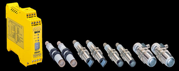 The L4000 system consists of the UE401 safety evaluation device and photoelectric safety switches. The UE401 safety evaluation device functions as the link between the photoelectric safety switches and the machine controller. It makes it possible to connect up to 4 sensor pairs (sender/receiver combination) or up to 8 cascaded sensor pairs. Color LEDs provide local information about the operational status. Quickly see diagnostic data using status and error messages on the 7-segment display of the UE401 safety evaluation unit . Even complex protection tasks can be performed due to the ability to connect up to 8 sensor pairs, a range of versions that can be selected according to requirements, suitability for outdoor applications and the use of deflector mirrors.