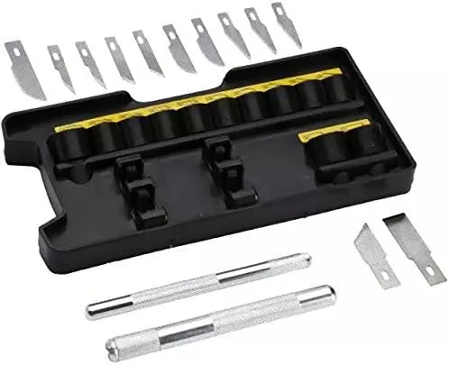The pack of 15 ensures an ample supply of knives for various tasks or for distribution among a group of users. The blades are easily replaceable, ensuring a continuous supply of sharp cutting edges. The utility of these hobby knives spans across crafting, model-making, and other intricate projects where precision cutting is essential.