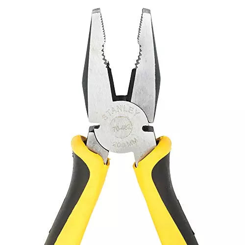 The STANLEY 70-482 pliers are a high-quality tool that is perfect for use in any number of DIY projects. They are constructed from high-carbon steel, which is tempered and hardened for durability and features unique grooves along the jaws that provide a solid grip on wires or cables. The pliers also have a rubber grip that helps to reduce hand fatigue during long hours of use. The tool offers a variety of cutting, bending, gripping, and twisting functions that can be used to handle bending and breaking wires or cables. For instance, users can bend wire hangers into shape using the pliers' jaws, or they can use the cutting action to cut through small wires or cables. It has an overall length of 8", a jaw length of 2.5", and a jaw width of 1". When you need to clip the end of a wire or strip its covering, you can rely on this STANLEY 8 inch Double Color Sleeve Combination Pliers. It is equipped with a unique grooved jaw that provides an optimum grip on the wires, preventing the wires from slipping or moving from their position. The pliers are also equipped with a rubber grip for better control and minimising hand fatigue when used for long hours. Its blades are tempered and hardened to extend their lifespan. The STANLEY 8-inch Double Color Sleeve Combination Plier, model 70-482, is a tool that can be used in a multitude of applications. The pliers have been made with tempered and hardened steel material, which makes them ideal for long-term durability. The unique grooves on the jaws of the pliers ensure an optimum grip on wires and cables. They also have a rubberized grip that ensures comfortable operation even during intense applications. This tool is great for DIY enthusiasts or for professional use at home or in the workplace.