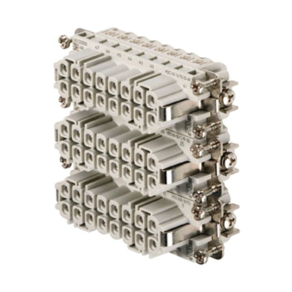 The HDC HA 16 FS 33-48 is a heavy-duty industrial connector with 16 contacts, designed for power and signal transmission. The "FS" refers to a specific contact configuration, and "33-48" likely indicates the range of available pin configurations. This connector is built for use in rugged environments, ensuring high-performance, secure, and reliable connectivity in industrial automation, machinery, and control systems. It is ideal for demanding applications requiring durable and stable connections under harsh conditions.