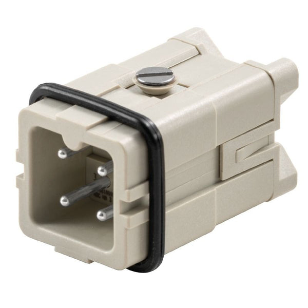 The HDC HA 3 MS is a heavy-duty industrial connector with 3 contacts, designed for reliable power and signal transmission. The "MS" refers to a specific contact configuration or type. This connector is built for use in harsh environments, ensuring secure and high-performance connectivity for applications in industrial automation, machinery, and control systems. It provides durability and stability in demanding conditions.