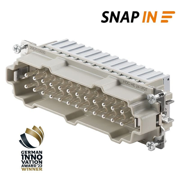 The HDC HE 24 N MQT is a heavy-duty rectangular connector featuring 24 poles, designed for industrial use. It ensures reliable electrical connectivity for power and signal transmission. With robust construction, it withstands demanding environments, making it ideal for applications requiring secure, efficient, and long-lasting performance.
