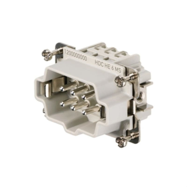The HDC HE 6 MS is a heavy-duty connector designed for industrial applications requiring secure, reliable connections. With a 6-pole configuration, it provides high performance in compact designs. Its metal housing offers excellent protection against mechanical stress, vibration, and environmental factors, ensuring reliable power and signal transmission in harsh conditions.