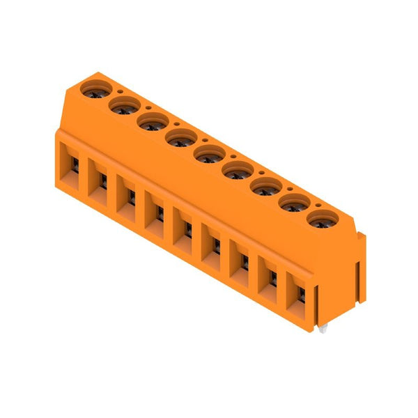 The LM 5.00/09/90 3.5SN OR BX is a durable terminal block designed for secure electrical connections with a 5.00mm pitch. Its robust construction makes it ideal for industrial applications. The orange color provides easy identification, and the terminal block is packaged in a box for bulk usage.