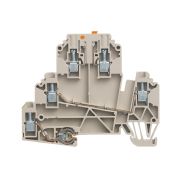 The WDK 2.5/TR-DU-PE is a terminal block designed for protective earth (PE) connections, suitable for wire sizes up to 2.5 mm². It features a screw connection for secure and reliable grounding. The "TR-DU" designation indicates that it is designed for easy mounting on DIN rails, while the "PE" denotes its specific use for protective earth or grounding purposes. This terminal block is ideal for industrial electrical applications where a secure and durable earth connection is critical for safety and system performance.