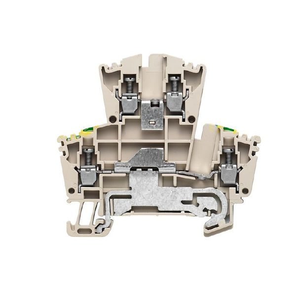 The WDK 2.5DU-PE is a terminal block designed for secure electrical connections, supporting 2.5mm² wire sizes. The "DU" typically refers to a double connection or dual terminal design, allowing for more efficient wiring. The "PE" designation indicates that the terminal block is specifically intended for protective earth (ground) connections, ensuring safety in electrical systems. This terminal block is commonly used in industrial, control panel, or automation applications where both secure grounding and reliable electrical connections are essential.