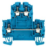 The WDK 2.5N BL is a terminal block designed for wire sizes up to 2.5 mm², featuring a screw connection for secure electrical contact. The "N" typically indicates its use for neutral (N) connections, and the "BL" designation refers to its blue color, which is commonly used to identify neutral wiring in electrical installations. This terminal block ensures safe, reliable, and efficient connections in industrial and electrical applications.