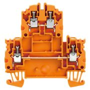 The WDK 4N OR is a terminal block designed for wire sizes up to 4 mm², featuring a screw connection for secure and reliable electrical contact. The "N" indicates its suitability for neutral or general-purpose connections, while "OR" refers to its orange color, often used for specific circuit identification or signaling purposes. This terminal block is ideal for industrial and electrical applications, ensuring durability, safety, and clear visual differentiation in wiring systems.