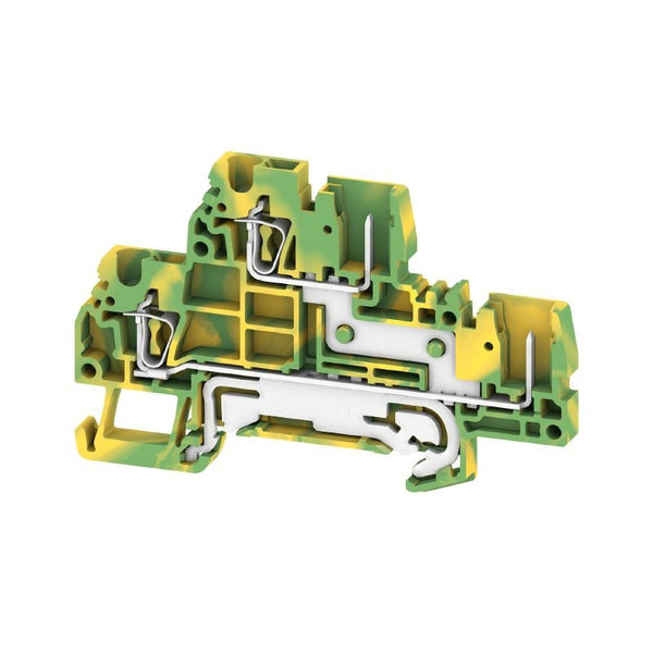 The "ZDT 2.5/2 PE" is a terminal block designed for 2.5 mm² wire capacity with a 2-terminal configuration, specifically intended for protective earth (PE) connections. It ensures secure grounding and reliable electrical connections, commonly used in control panels, industrial, and automation systems to maintain safety and proper functioning in electrical installations.