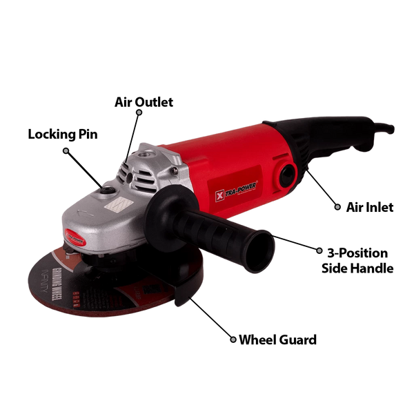 Looking for a handy, easy-to-use angle grinder? Get XTRA-POWER XPT 400 with a 180mm diameter wheel. The angle grinder offers three positioned sides for the handle for you to choose from and comes with a safety lock for the disc. It gives you a speed of 8300 RPM for smooth and fast results. A powerful motor with a power input of 2050 Watts makes cutting, grinding, and polishing runs effortlessly. The angle grinder is suitable for various materials and tasks as it can be used with cut-off Wheels, grinding discs, grinding stones, sanding discs, wire brush wheels, and polishing pads. It is designed with the perfect body to have a stable and strong grip.