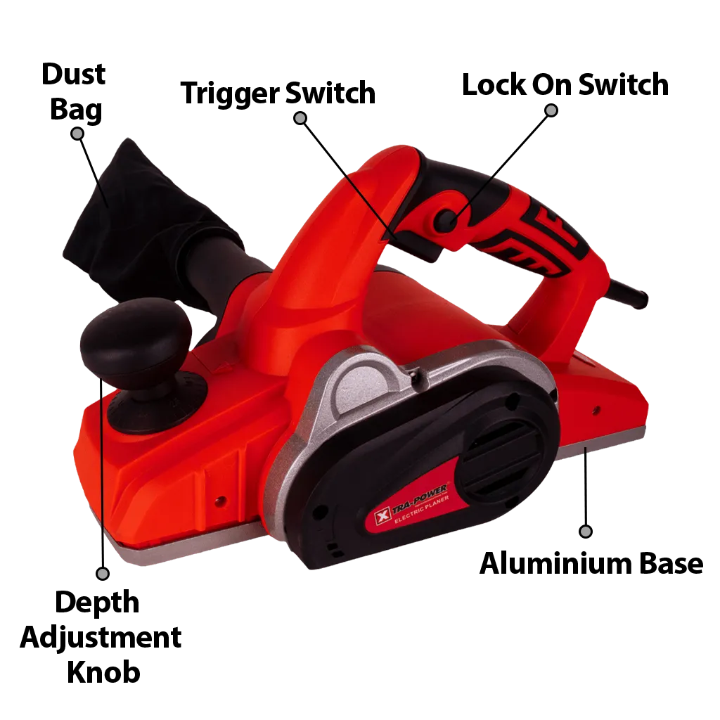 Searching for a reliable, easy-to-use planer? XTRA-POWER XPT 456 with a planning scale of 110 X 3 mm. The planer provides a soft rubber hold and comes with a safety lock for safe initiation. This brings you a speed of 16000 RPM for seamless and effective performance. A strong motor with a given frame of 1200-watts makes it possible to smooth the surface of the wood effortlessly. The planer is also perfect for smoothing the rough spots of the wood so that there are no end grains left which give you a flawless end result.