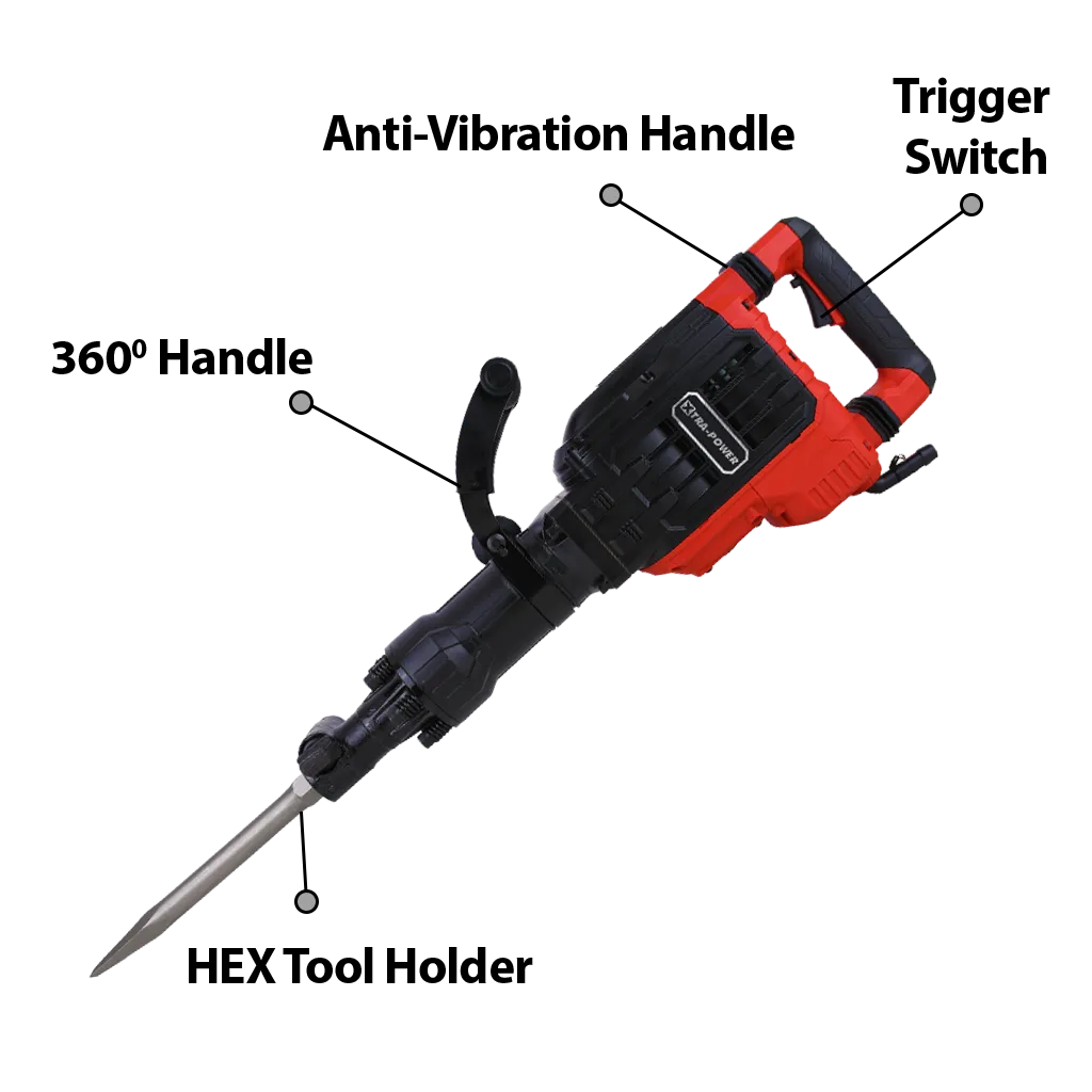The XPT-517 Demolition Hammer is a powerhouse of a tool, boasting a formidable 1700 Watts of input power, a remarkable no-load speed of 1900 BPM, and an astonishing 60J impact energy, making it a prime choice for high-performance demolition work across various surfaces. Its SDS HEX tool holder facilitates quick and secure bit changes, enhancing job-site productivity, while the switch lock button adds an extra layer of safety and convenience for prolonged operation. Crafted from durable materials and engineered for precise performance, this demolition hammer can tackle the most demanding tasks, offering maximum removal throughout the day. Its innovative design ensures optimal weight distribution, whether in vertical or horizontal applications, making it a versatile and reliable choice for heavy-duty demolition work.