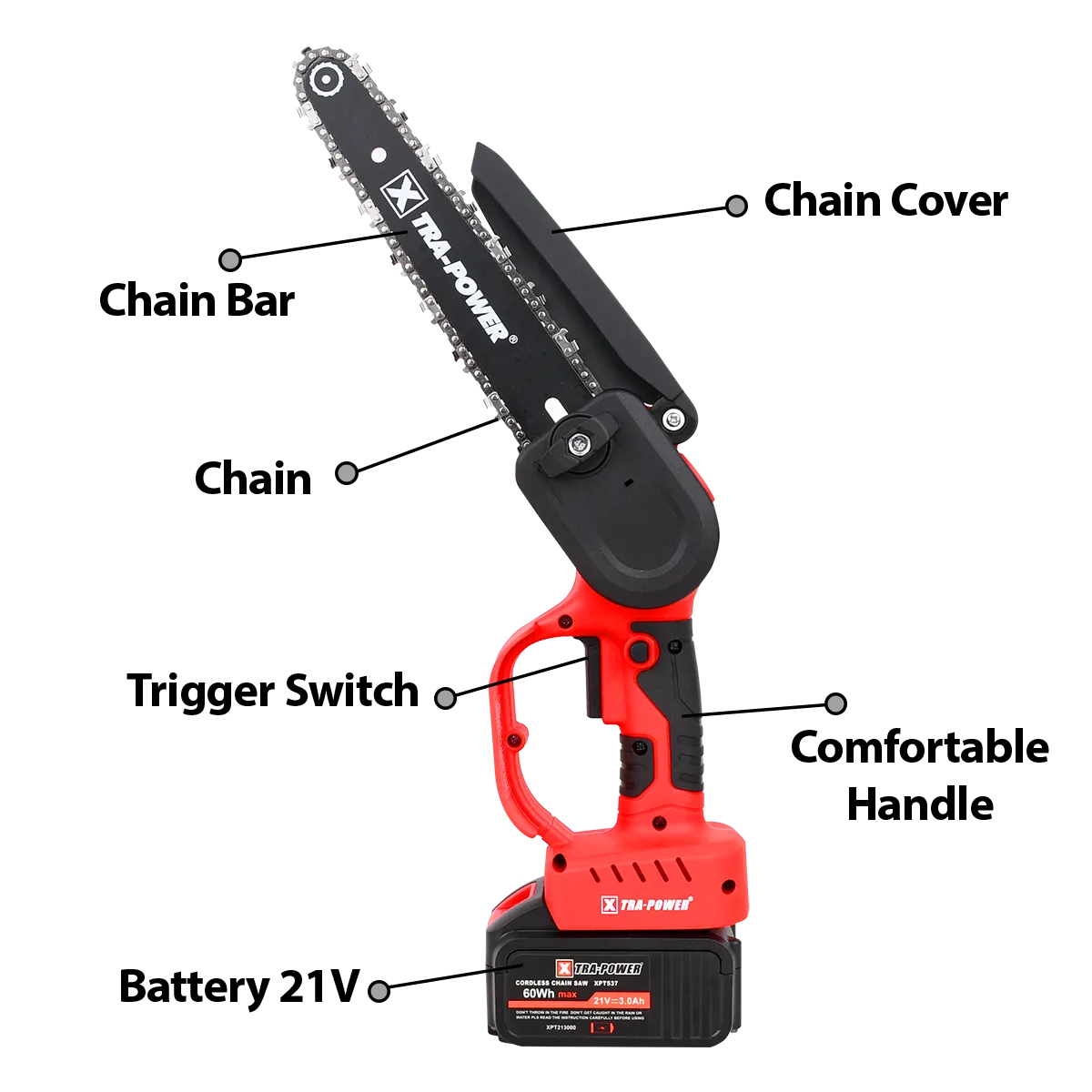 The Xtra Power XPT 537 Cordless Chain Saw stands out as a highly efficient and convenient tool for a variety of cutting tasks, notably enhanced by its brushless motor technology. This advanced motor design contributes to its efficiency and durability, making the saw more reliable and requiring less maintenance compared to brushed motors. Its cordless design, powered by a robust 3000 mAh battery and operating at 21 volts, offers unmatched flexibility to work in various environments without the need for a continuous power source.