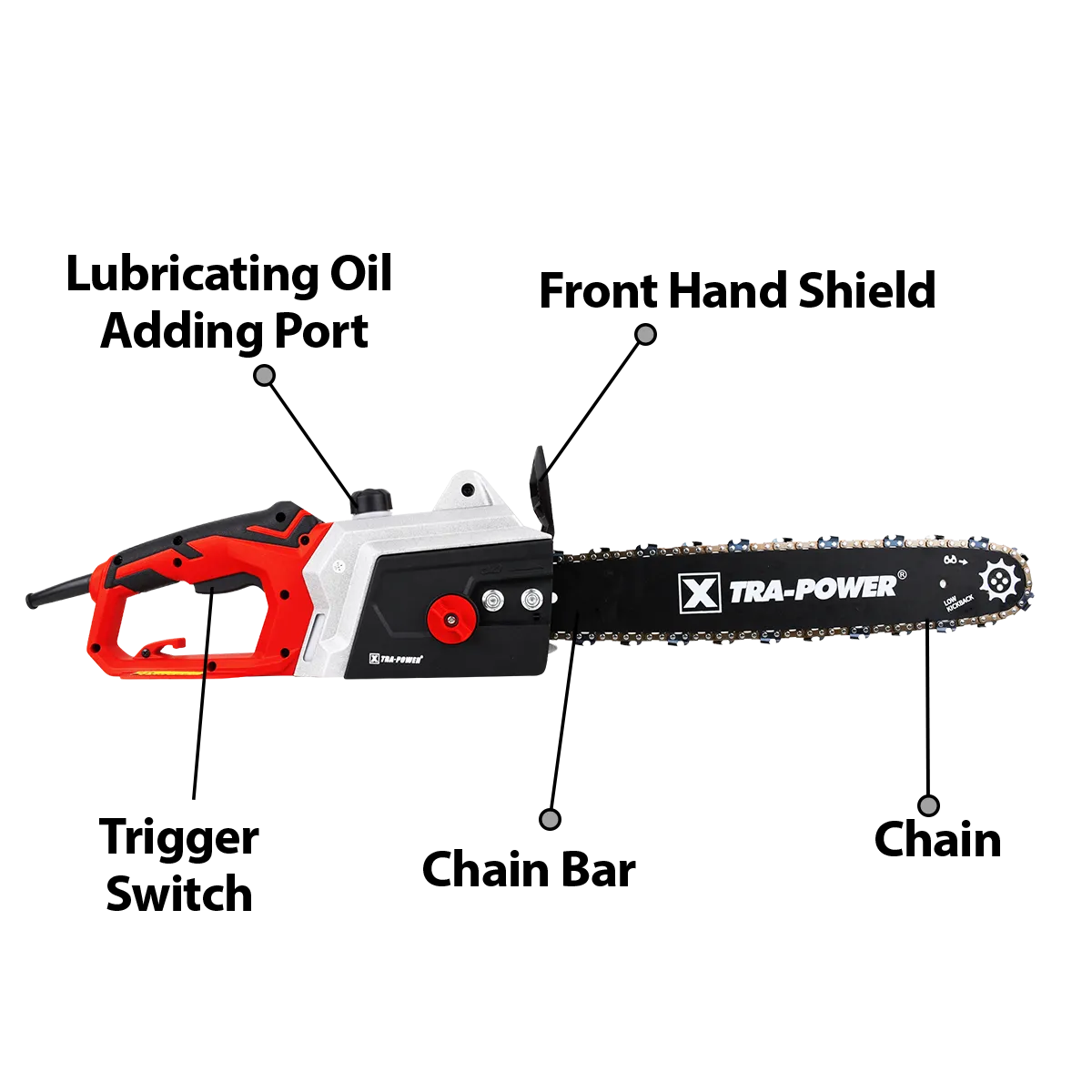 The XPT 568 Electric Chain Saw With a powerful 1400 Watts motor and a no-load speed of 400 RPM, it delivers a perfect blend of power and performance for various cutting tasks. One of the standout features of the XPT 568 is its 405MM bar length, providing ample reach for cutting through thick branches and logs. Combined with an impressive chain speed of 400M/MIN, it ensures smooth and rapid cutting, reducing the effort and time required for challenging tasks. Safety is a key aspect of the XPT 568, as evidenced by its inclusion of a switch lock button, a feature that enhances user safety during operation. The electric design of the XPT 568 offers several advantages. It eliminates the need for fuel, reducing both maintenance and environmental impact. The XPT 568 Electric Chain Saw is a powerful, efficient, and safe tool, perfect for a variety of cutting tasks. Its combination of high power, fast chain speed, and thoughtful safety features make it a reliable choice for anyone needing a Powerfull electric chainsaw.