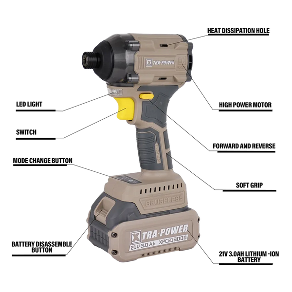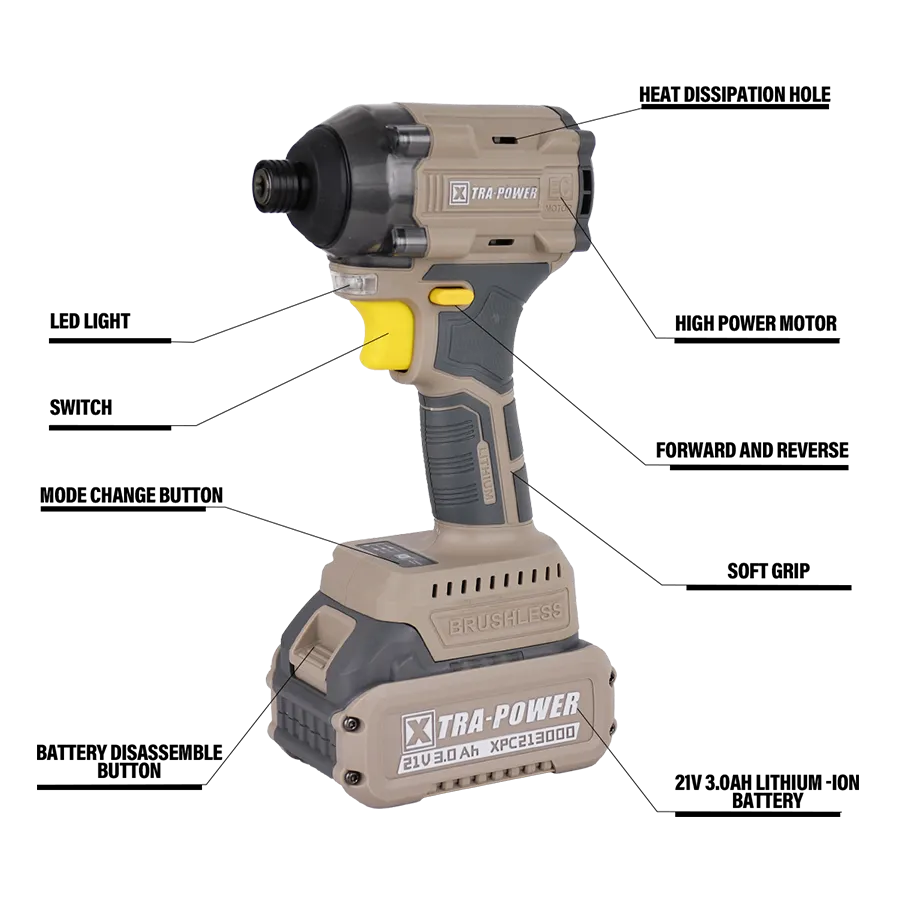 XTRA-POWER XPC-IS-01 Impact Screwdriver is designed for maximum efficiency and power. With its robust motor and high-impact torque, it effortlessly drives screws and fasteners into tough materials. The tool features multiple speed settings and a precision-engineered impact mechanism for optimal control and performance. Its ergonomic design ensures comfort during extended use, reducing user fatigue. Ideal for both professional tradespeople and DIY enthusiasts, the XPC-IS-01 is your go-to solution for quick, reliable, and effective fastening. Upgrade your toolkit today and experience superior impact performance!